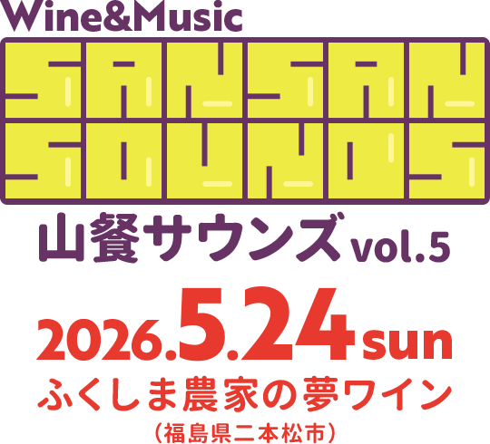 SanSanSounds is a wine and rock festival with free admission that will be held at Fukushima Farmers' Dream Wine in Nihonmatsu City, Fukushima on Sunday, 1824 May 2026.